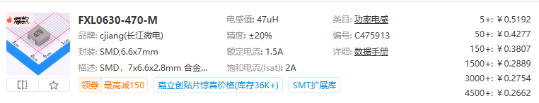 立创上简单搜索一下,一体成型电感的规格书上,一般都会标注电感的耐压值。