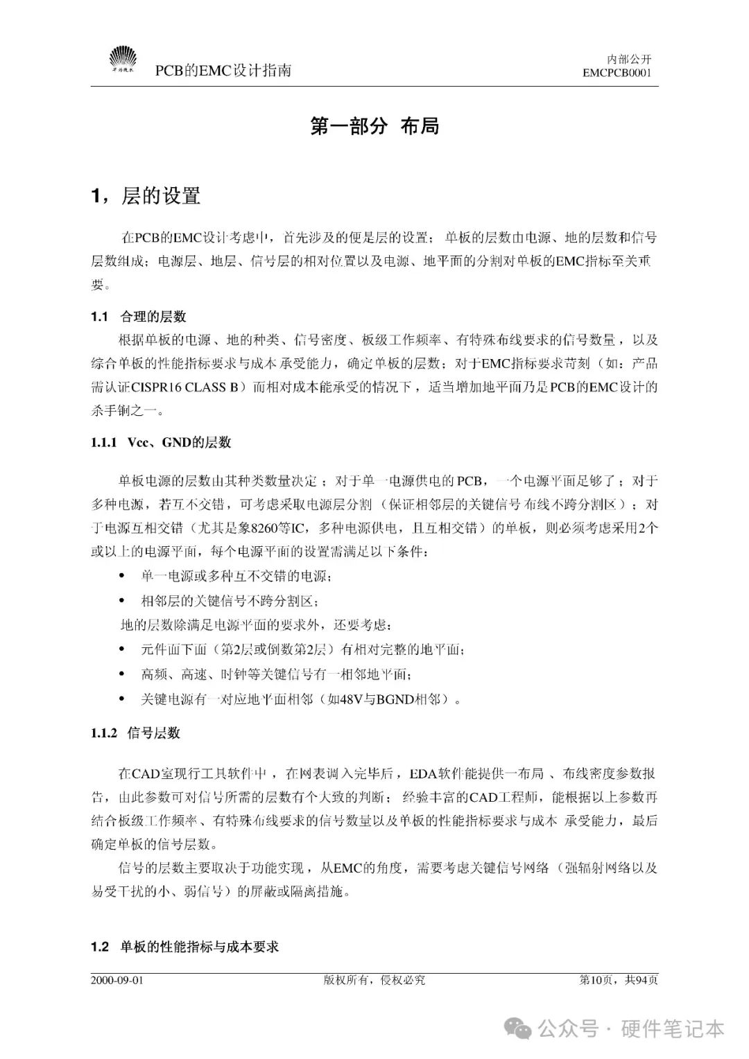 转载一篇华为《PCB的EMC设计指南》,合计94页PDF,对PCB的EMC设计从布局、布线、背板的EMC设计、射频PCB的EMC设计等方面做了系统的总结,供大家进行PCB的EMC设计参考。