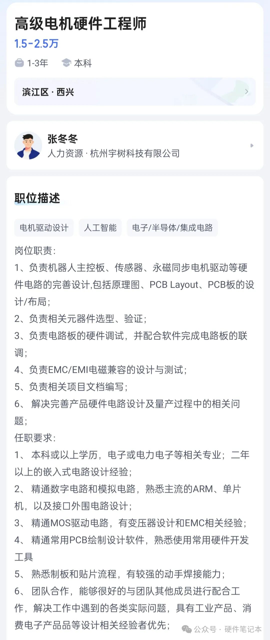 大家好,我是王工。前段时间跟一个兄弟聊天,他说他想辞职,但是又不敢辞职,想等拿了年终奖再看。之所以有点纠结是因为有两个顾虑,一方面是因为现在大环境不好,怕出去找不到工作;另一方面是因为感觉在现在的公司看不到希望,干了多年工资不涨,福利也没有。1、那么,干硬件多久跳槽一次比较合适?3年跳一次可以吗?一起来看看别人的经验吧。1、建议干两年以上再跳槽,至少要能够独立做几个项目。2、建议3年,把基础做的扎实一点。 3、看个人能力。 其实他们说的都没错,核心还是在于自己,只要你工作能力强,即使工作年限很短,很多用人单位也是会录取的,企业招人就是去解决问题的,所以这个工作时间我个人觉得不是主要因素。英雄不问出处,有些人年纪轻轻,早已功成名就,有些人奋斗一生,却也碌碌无为。2、涨薪多少比较合理?一般建议20%-50%,这得看个人实际情况。如果你在原来的公司,有些许进步,但不是特别的突出,只是呆腻了,想换个环境,那么20%-30%就差不多了。如果你在原来的公司成长很快,表现突出,特别优秀,想去一个更有挑战性的平台,那涨薪50%也不是没有可能。以上都是根据王工的一些个人经验总结,不一定完全对,大家各抒己见。声明: 声明:原创文章,转载请注明出处。本号对所有原创、转载文章的陈述与观点均保持中立,推送文章仅供读者学习和交流。文章、图片等版权归原作者享有,如有侵权,联系删除。 来源:硬件笔记本