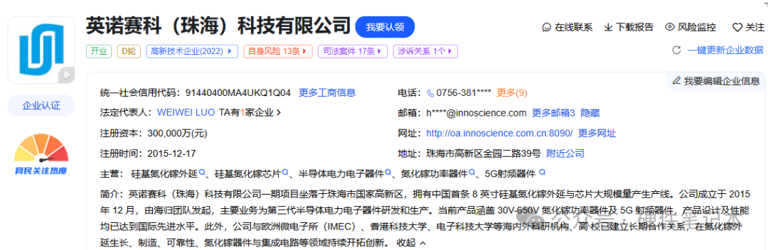 英诺赛科(Innoscience),成立于2015年,旨在打造全球最大的采用全产业链模式,集设计、研发、生产和销售为一体氮化镓(GaN )的生产基地。