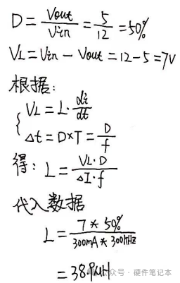 计算如下,其中D是占空比,VL是电感两端的电压。