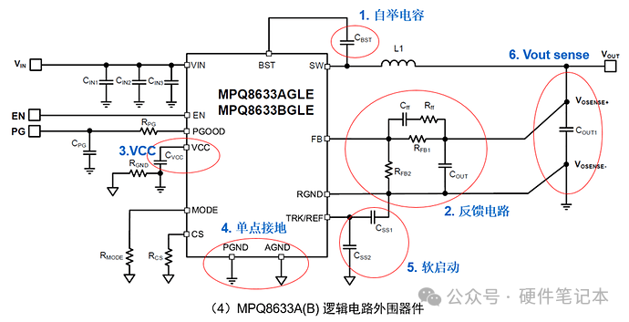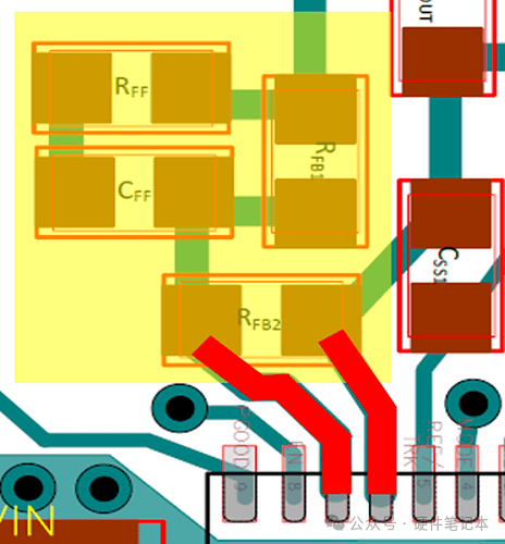讨论完功率回路部分,转眼看芯片逻辑电路部分,这部分的PCB布局也是有所讲究的。