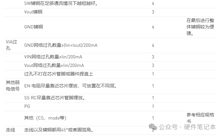 以上表格适用于简单的buck、boost电路的PCB设计,多用单层或者双层板即可。仅供参考,欢迎补充。