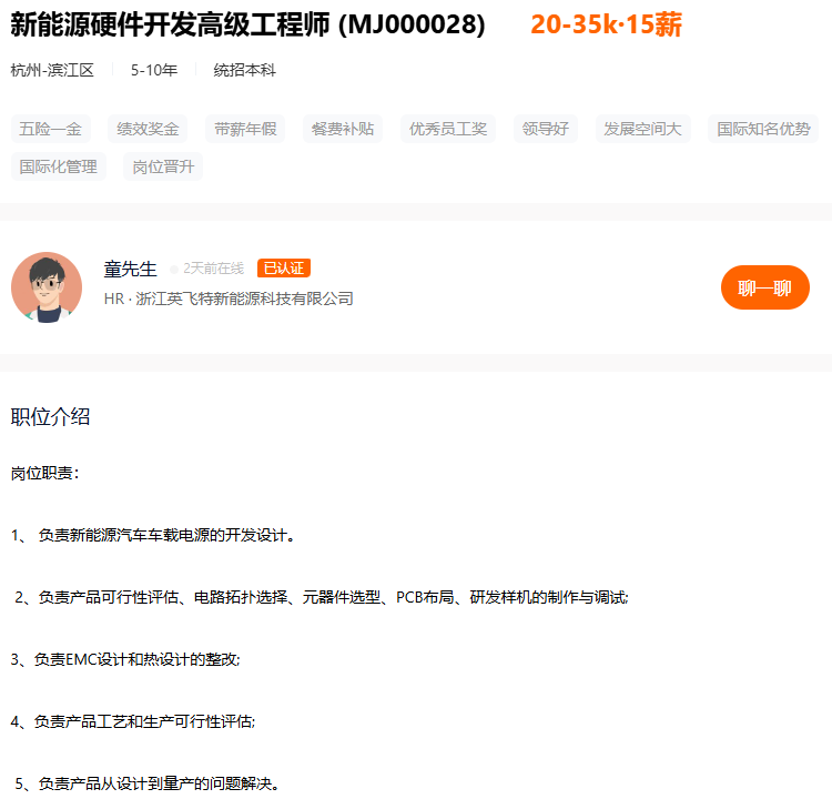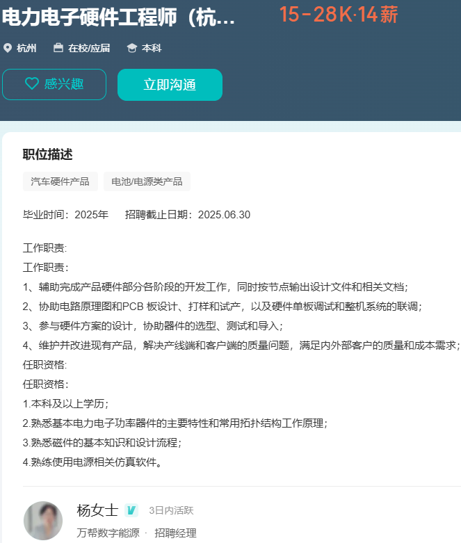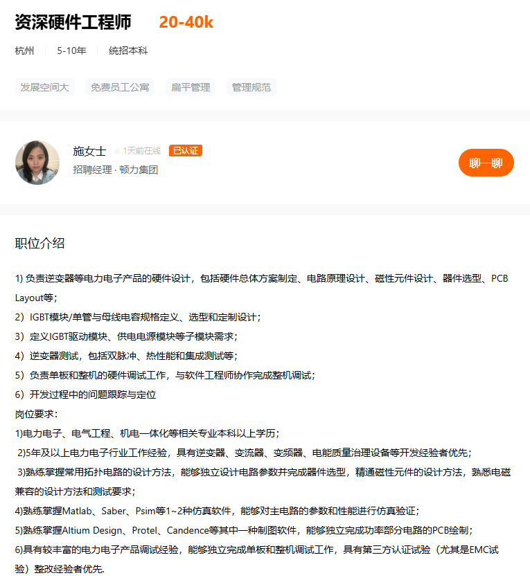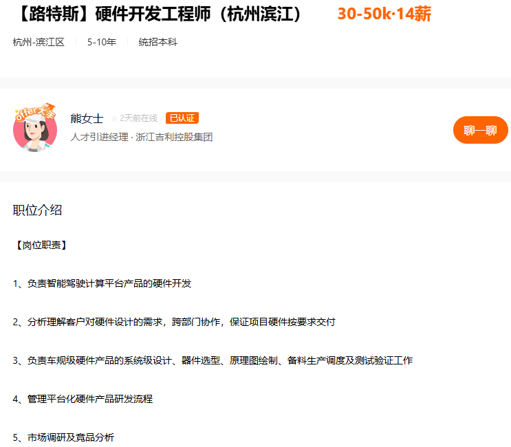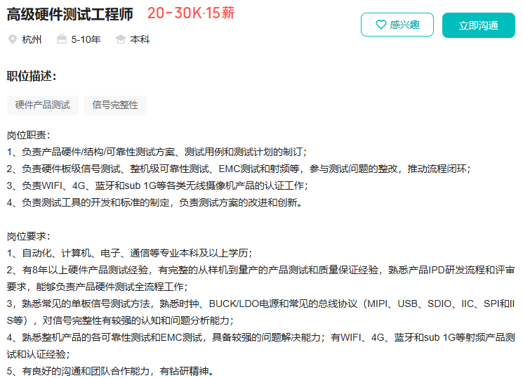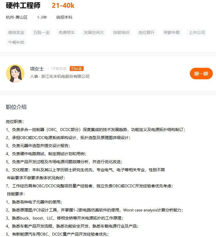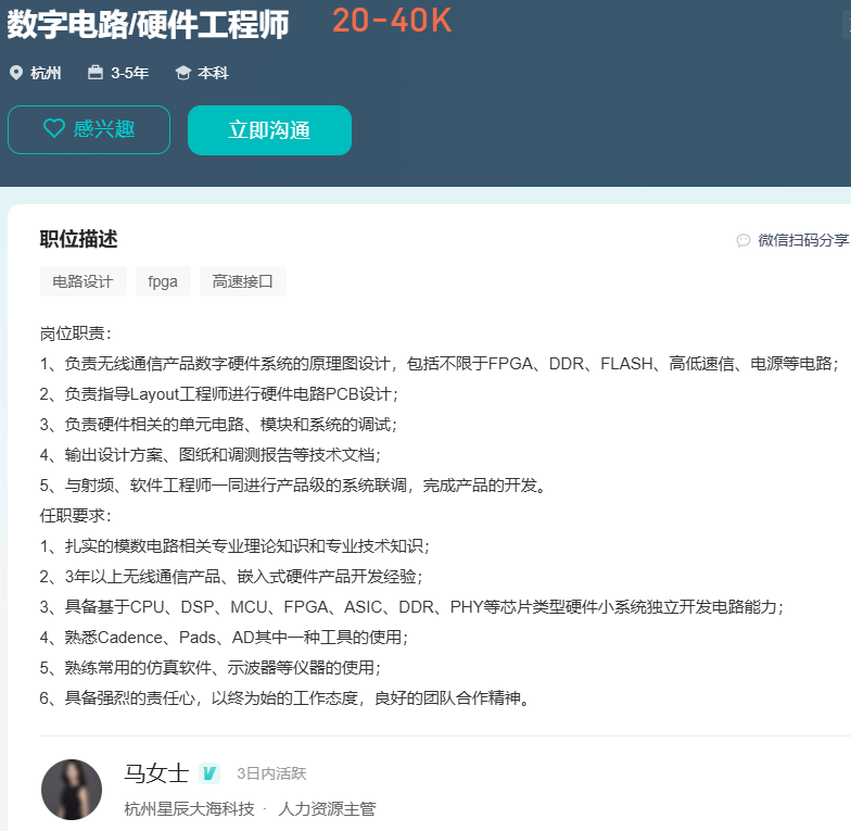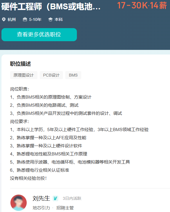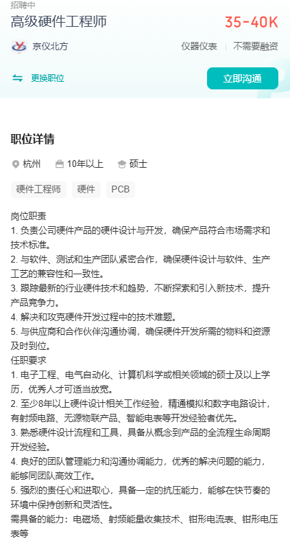 目前在杭州有硬件研发工程师的需求,负责公司硬件产品的硬件设计与开发。