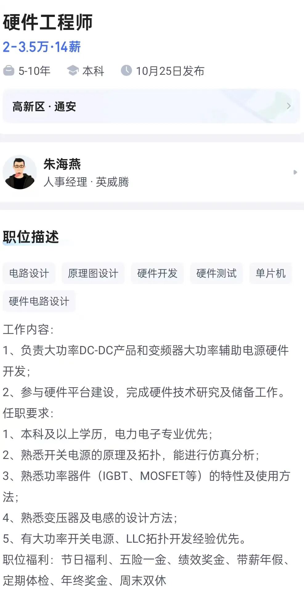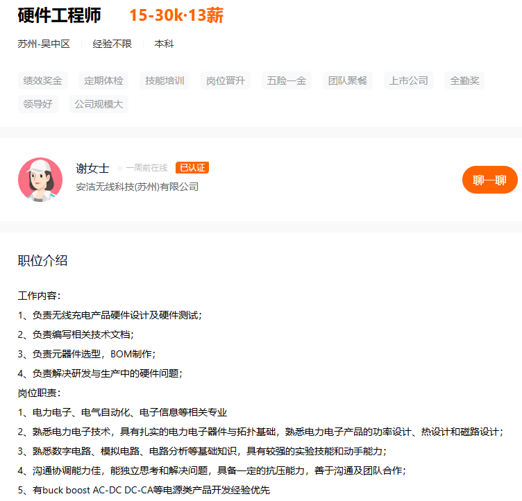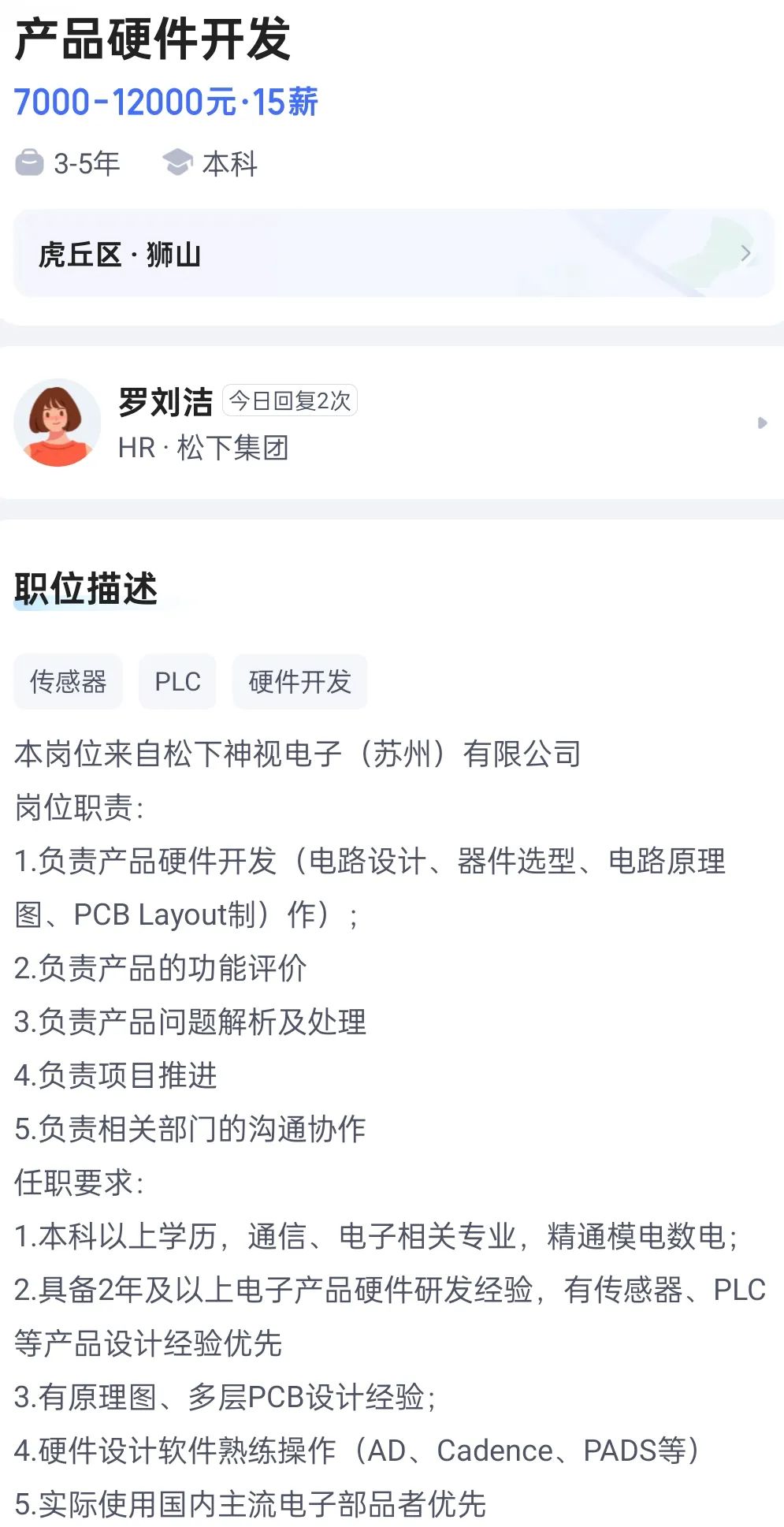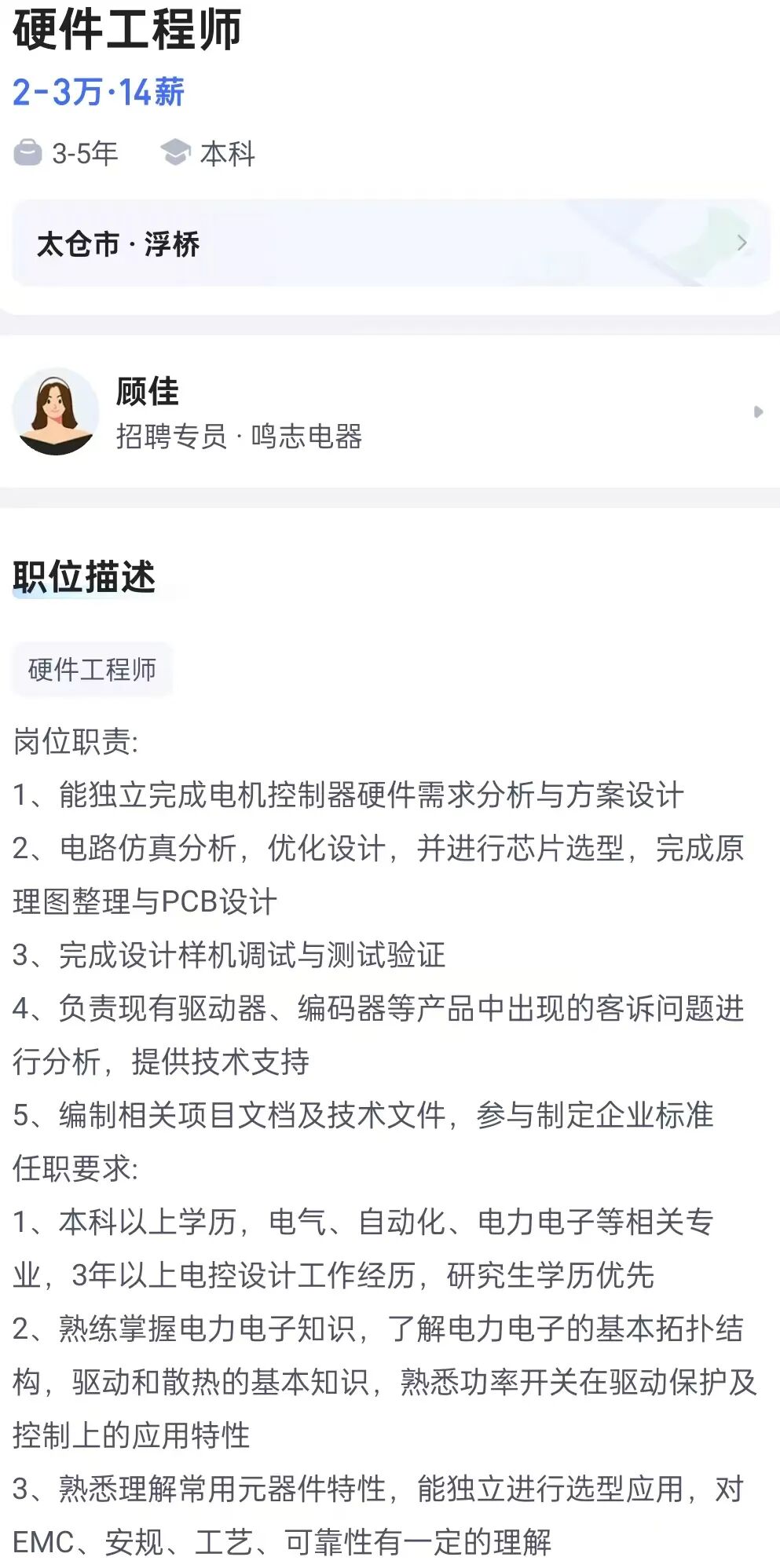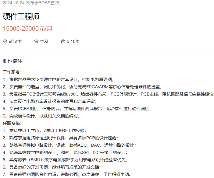 他们之前发过一个武汉硬件工程师的招聘,大家可以参考