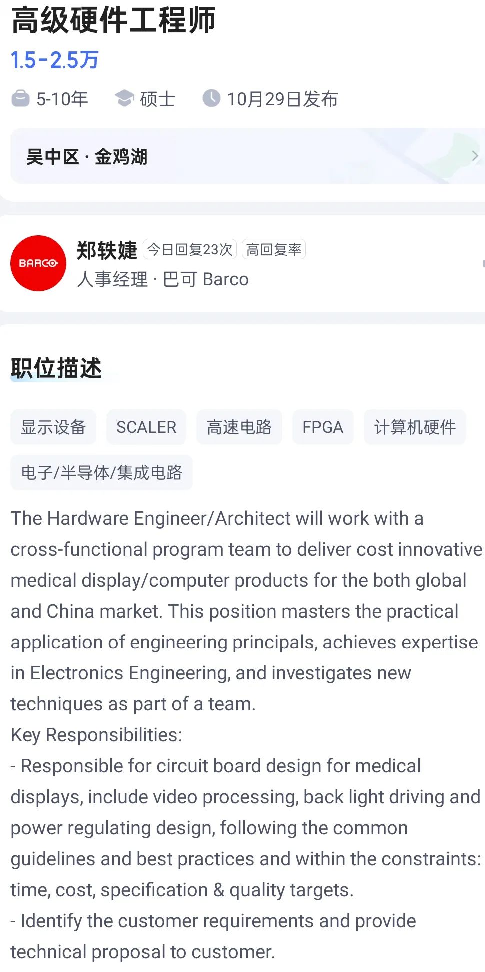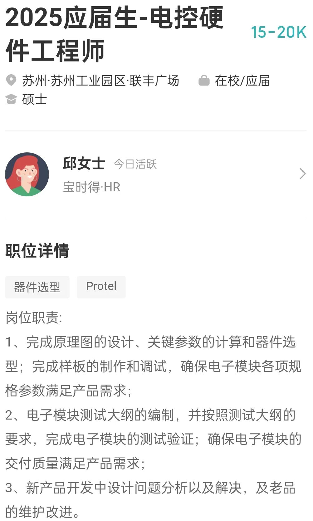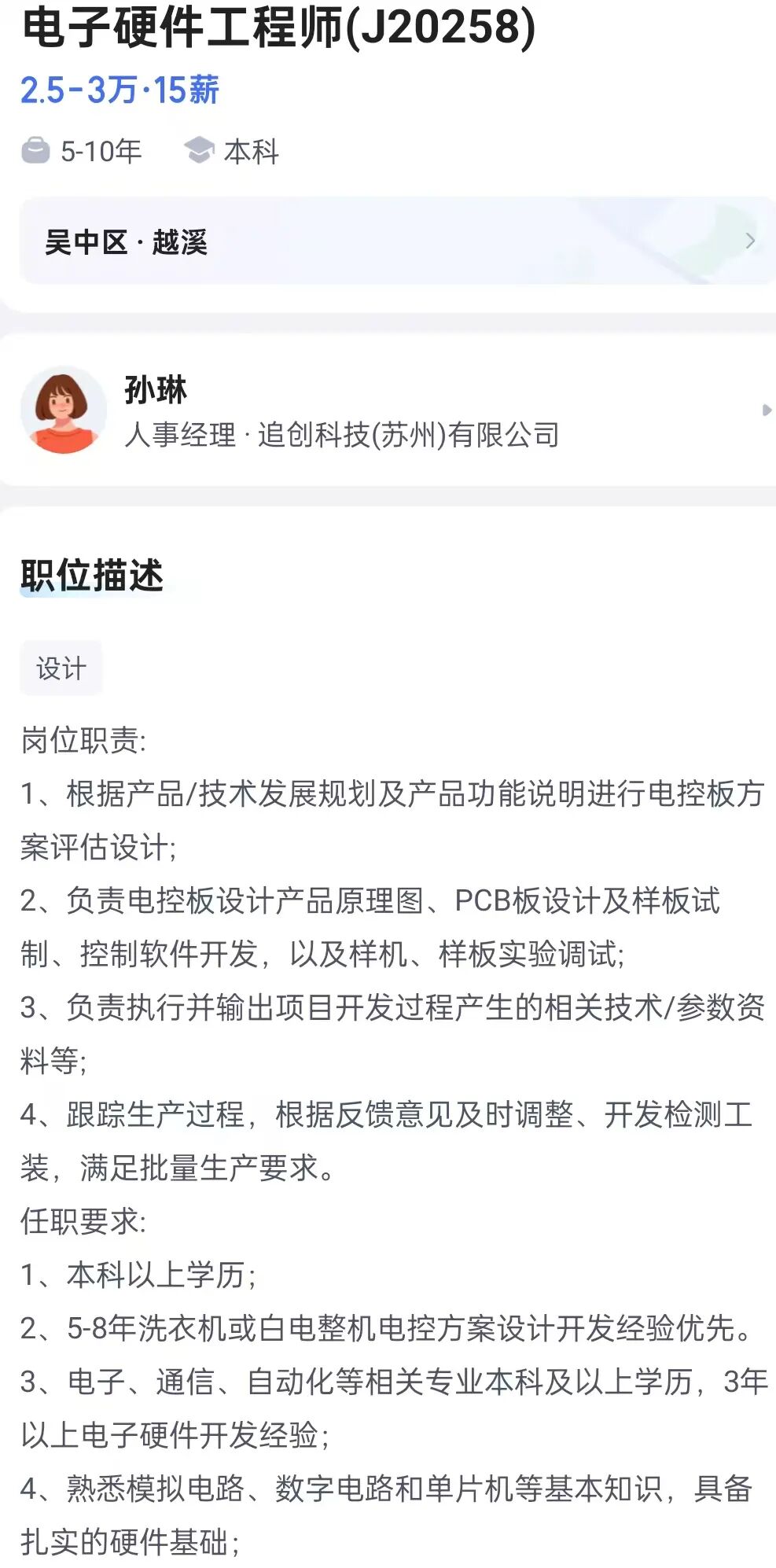 他们之前发过一个武汉硬件工程师的招聘,大家可以参考