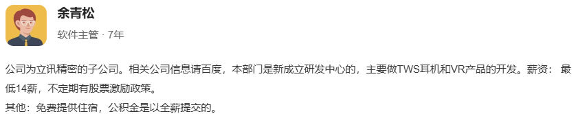 没有加班文化,965,待遇18k-23k月薪(0-6个月年终)+双边8%公积金,苏州有人才补贴,国企强度。缺点:加班情况和部门有关,硕士基本上都是985、211。2、联合电子