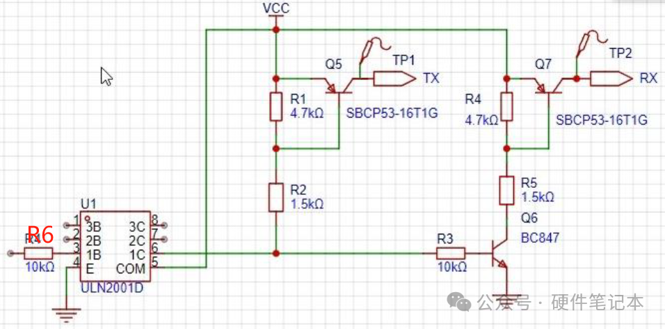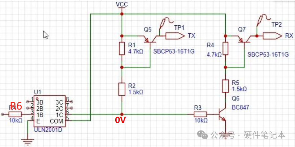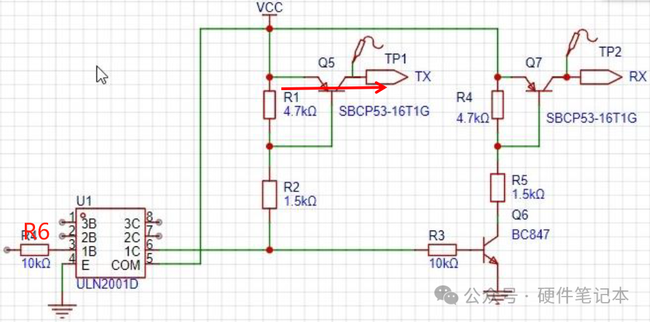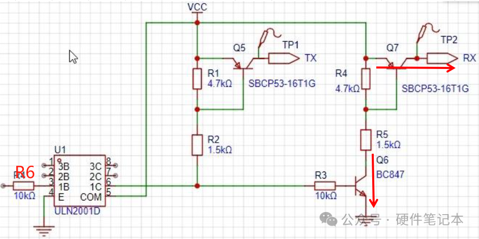 3.2 Q5的Vbe>0.7V(这里简单,大家自己算),Q5导通,TX=12V,为高。