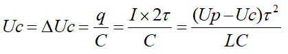 上面公式是计算共模浪涌抑制电路中电感L和电容CY参数的计算公式,式中,Uc为CY电容两端的电压,也是浪涌抑制电路的输出电压,∆Uc为CY电容两端的电压变化量,但由于雷电脉冲的周期很长,占空比很小,可以认为Uc = ∆Uc,Up为共模浪涌脉冲的峰值,q为CY电容存储的电荷,τ为共模浪涌脉冲的宽度,L为电感,C为电容。