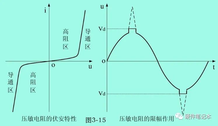 压敏电阻一般都是以氧化锌为主要成分,另加少量的其它金属氧化物(颗粒),如:鈷、猛、铋等压制而成。由于两种不同性质的物体组合在一起,相当于一个PN结(二极管),因此,压敏电阻相当于众多的PN结串、并联组成。