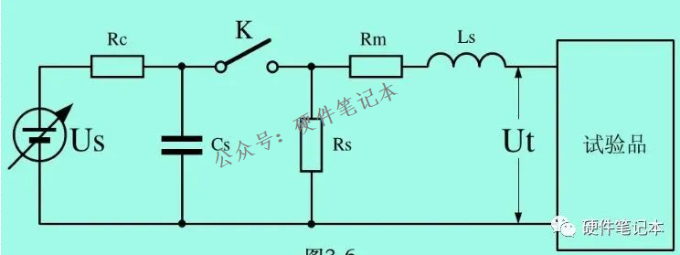 图中Cs是储能电容(大约为10uF,相当于雷云电容);Us为高压电源;Rc为充电电阻;Rs为脉冲持续时间形成电阻(放电曲线形成电阻);Rm为阻抗匹配电阻Ls为电流上升形成电感。