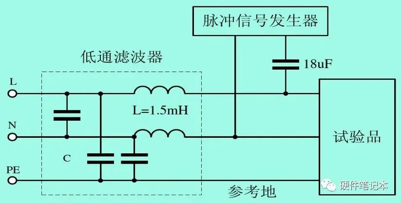 图中18uF电容,可根据严酷等级不同,选择数值也可不同,但大到一定值之后,基本上就没有太大意义。