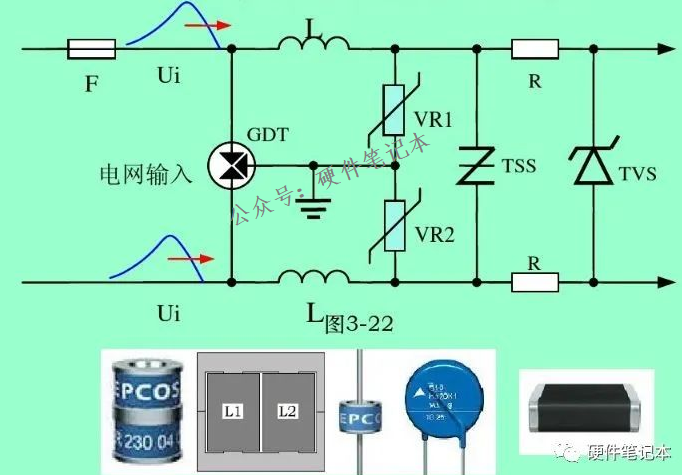 半导体TVS管伏安特性最好,但功率一般都很小,成本比较高;浪涌抑制线圈是最基本的防雷器件,为防流过电网交流电饱和,必须选用三窗口铁芯;X电容也是必须的,要选用容许纹波电流较大的电容。