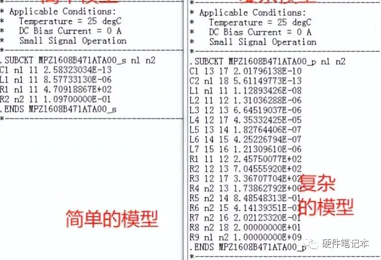 可以想象到的是,复杂模型的各种寄生参数更多,也更符合实际的器件。规格书中的曲线应该是从复杂模型得出来的。因此我们实际使用过程,直接使用厂家提供的频率阻抗曲线图即可。