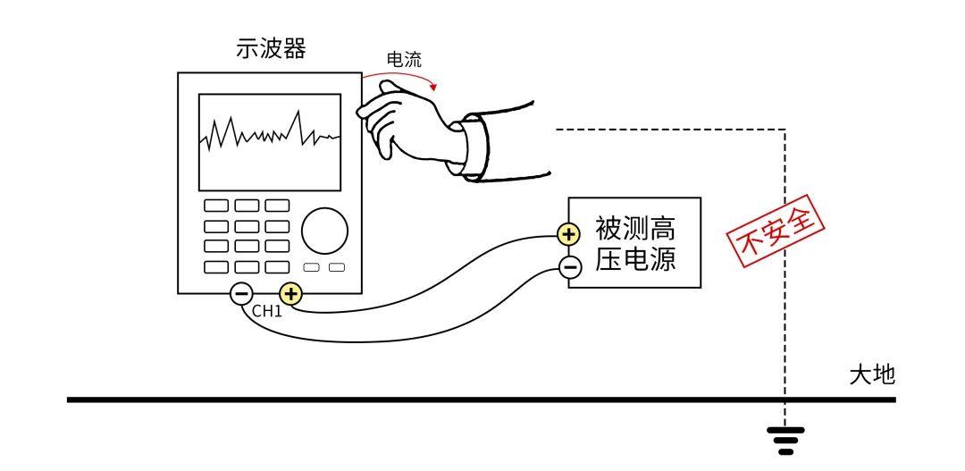 一般的示波器都是不带隔离的,外壳、通道外金属还有探头地线都是直接与市电地线相连接,在测试中非常容易犯的一个错误就是直接把示波器探头的信号线接火线,地线接零线,这是绝对不允许的,因为火线与地线短路或者是零线和地线短路,都非常危险!