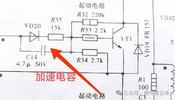 加速电容利用电容得电瞬间如无阻导线及电容两端电压不能突变特性,用于防止芯片的误导通,晶体管的快速导通与截止。