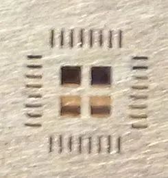 为了解决这些问题,对于面积大于约2mm2的焊盘,焊膏通常沉积在几个小的正方形或圆形区域中(见图4)。将焊料分布在多个较小的区域里可以使助焊剂的挥发性物质更容易挥发出来,以免造成焊料析出。