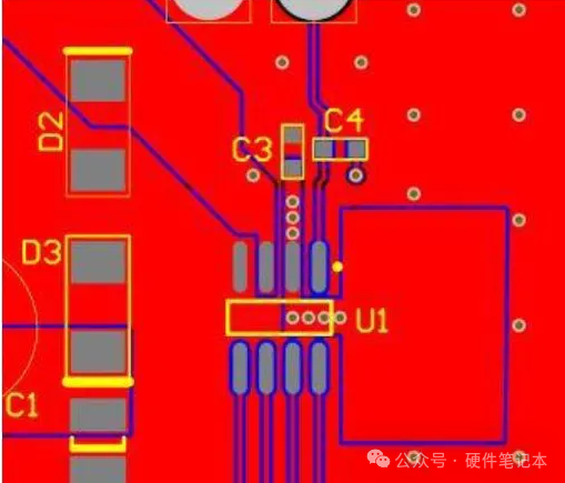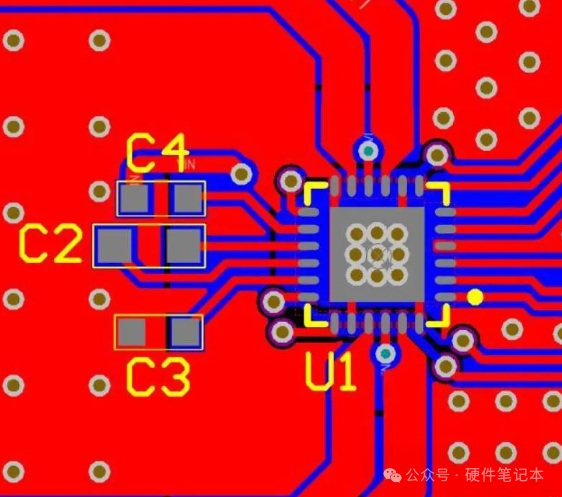 这里需注意,散热孔本身不具备散热功能,必须把它们直接连接至铺铜区域(见图3)。