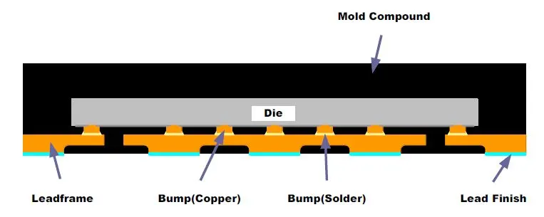 这些封装在芯片的表面采用了多排铜凸点粘接至引线框架(图14)。