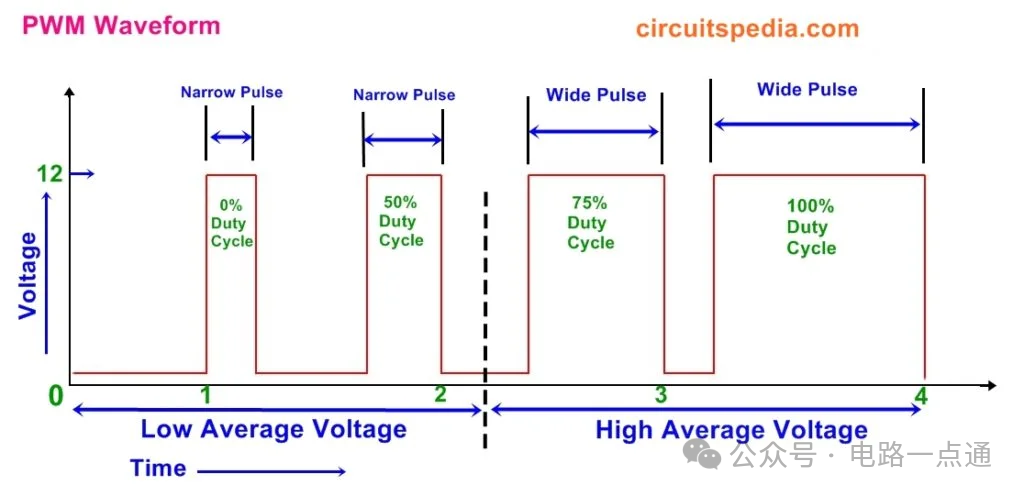PWM 方法是控制输送到负载的电量而不产生浪费功率的好方法。
