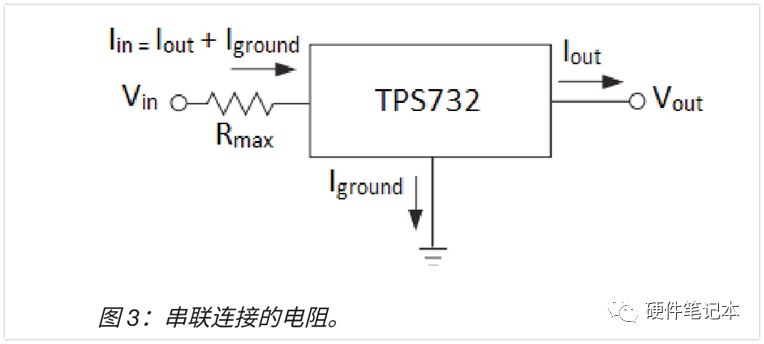可以在输入电压侧串联电阻,以便分担一些功耗;图 3 所示为相关示例。该技术的目标是使用电阻将输入电压降至可能的最低水平。