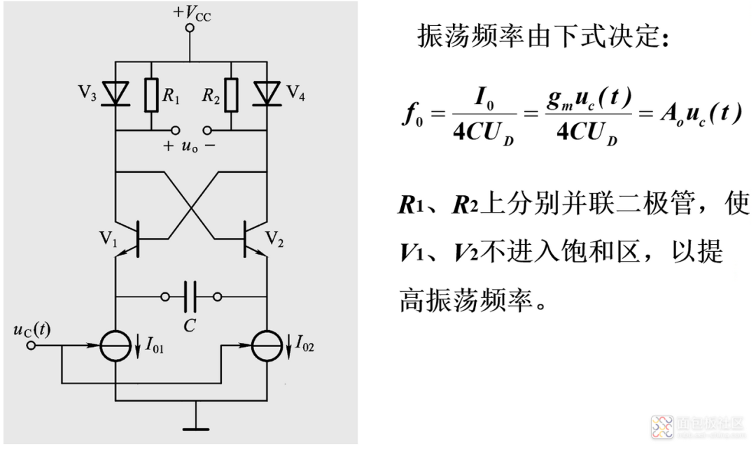 压控振荡器(VCO):在uC(t)控制下输出相应频率 fo。
