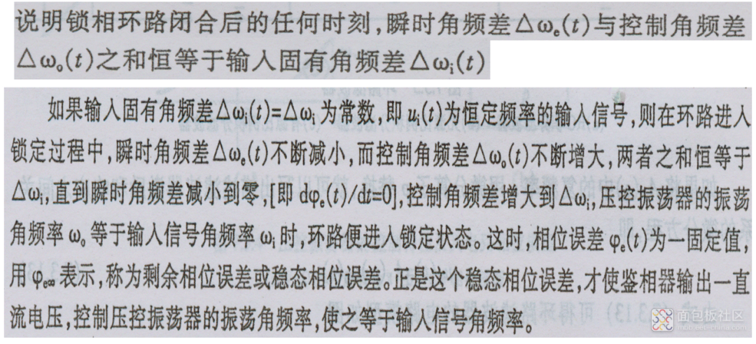 若wi ≠wo,则ui(t)和uo(t)之间产生相位变化 → uD(t) ,与瞬时误差相位成正比→uc(t),滤除了高频分量和噪声→ wo ,去接近wi ;最终使 wi = wo ,相位误差为常数,环路锁定,这时的相位误差称为剩余相位误差或稳态相位误差。
