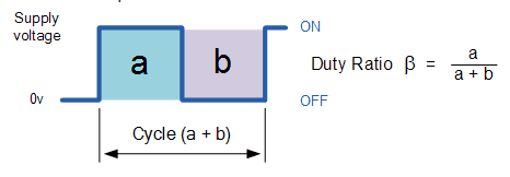 脉冲宽度速度控制前面我们曾说过,直流电动机的转速与其端子上的平均(平均)电压值成正比,并且该值越高,直到达到最大允许电动机电压,电动机旋转的速度就越快。换句话说,电压越高,速度越快。通过改变“开”(t ON)时间和“关”(t OFF)持续时间之间的比率,称为“占空比”,“标记/间距比率”或“占空比”,可以得出电机电压及其转速可以改变。对于简单的单极驱动器,占空比β为: