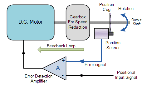 错误检测放大器会查看此输入信号,并将其与来自电机输出轴的反馈信号进行比较,以确定电机输出轴是否处于错误状态,如果是,则控制器会进行适当的校正,以使电机加速或减速它下来。对位置反馈设备的这种响应意味着伺服电机在“闭环系统”内运行。
