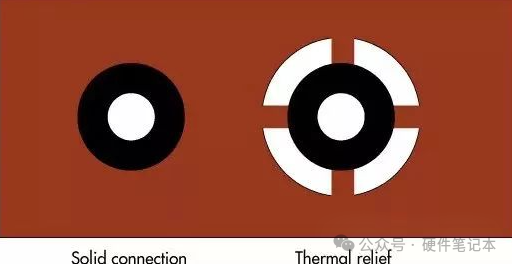 请注意,热通孔不得使用热风焊盘,它们必须直接连接至铜区域。
