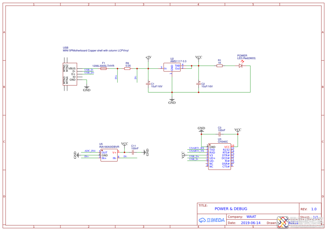 大电流线路要尽量的短粗,并且尽量避免经过过孔,一定要经过过孔的话要把过孔做大一些(>1mm)并且在焊盘上做一圈小的过孔,在焊接时用焊锡填满,否则可能会烧断。另外,如果使用了稳压管,场效应管源极对电源和地的导线要尽可能的短粗,否则在大电流时,这段导线上的压降可能会经过正偏的稳压管和导通的三极管将其烧毁。在一开始的设计中,NMOS管的源极于地之间曾经接入一个0.15欧的电阻用来检测电流,这个电阻就成了不断烧毁板子的罪魁祸首。当然如果把稳压管换成电阻就不存在这个问题了。