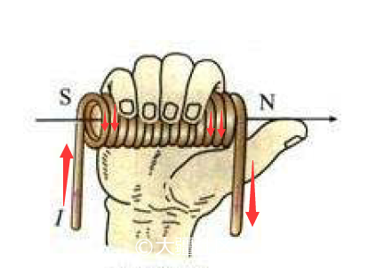 这个定则是通电线圈判断极性的基础,红色箭头方向即为电流方向。