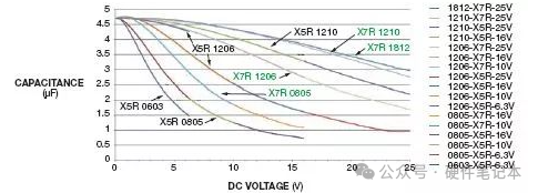 这是一个关键的要点,因此我要再重复一遍。只要一个电容满足了温度系数规范,不管其电压系数多么糟糕,厂商都可以把这个电容叫做X7R电容(或者X5R,或其他任何类型)。这个事实印证了任何一位有经验电器工程师都知道的那句准则(双关语):去读数据表!
