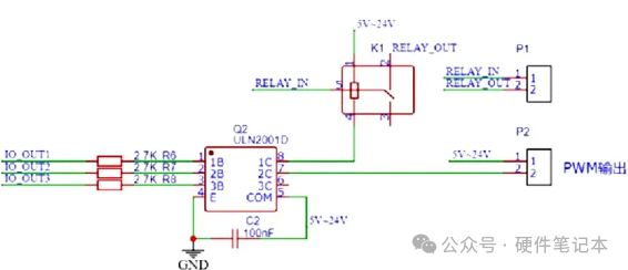 2、COM 端接电源 当输出端接感性负载的时候,负载不需要加续流二极管,芯片内部设计有二极管,只需 COM口接负载电源即可,当接其他负载时,COM口可以不接。