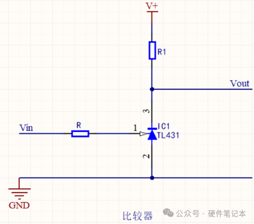 这是431用得最多的电路,输出电压Vout=(1+R1/R2)Vref。选择不同的R1和R2的值可以得到从2.5V到36V范围内的任意电压输出,特别地,当R1=R2时,VO=5V。由于参考极输入用的是射极跟随器,因此具有很高的输入阻抗,而输入电流很小。