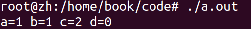 //求最终a、b、c、d的值:main(){int a,b,c,d;a = 0;b = 1;c = 2;d = a++ && b++ && --c;printf("a=%d b=%d c=%d d=%d\n",a,b,c,d);}//因为a++是先判断a的值再自加,而a初始值为0, 所以(a++)为假,//由短路现象可知&&后面式子b++和--c就都不会执行;//对于赋值语句,是先将a的值赋值给d,然后再自加,//所以d的值为0,a最终为1。