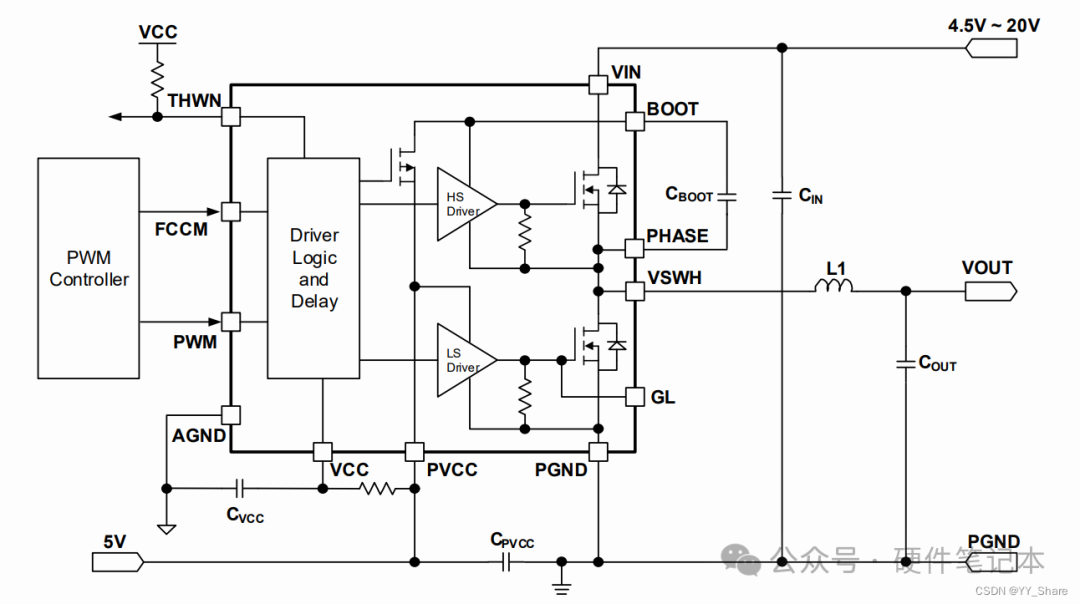 简单的说,就是利用电感储能,电流不能突变的原理,通过PWM控制 HS Driver和LS Driver进一步控制高边MOS和低边MOS的打开和关闭,调节输出的功能。