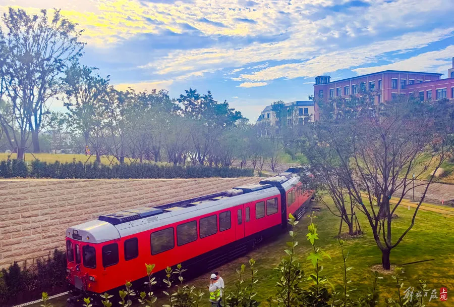 华为“练秋湖研发中心”分多个区,共有8个组团,目前,内部道路、小火车、高架立交桥等全部贯通。园区内的交通工具,类似于华为松山湖园区,采用有轨小火车,共设8个站(每个组团1个车站),并在E组团-森林小镇的地下部分区域建有小火车检修库。