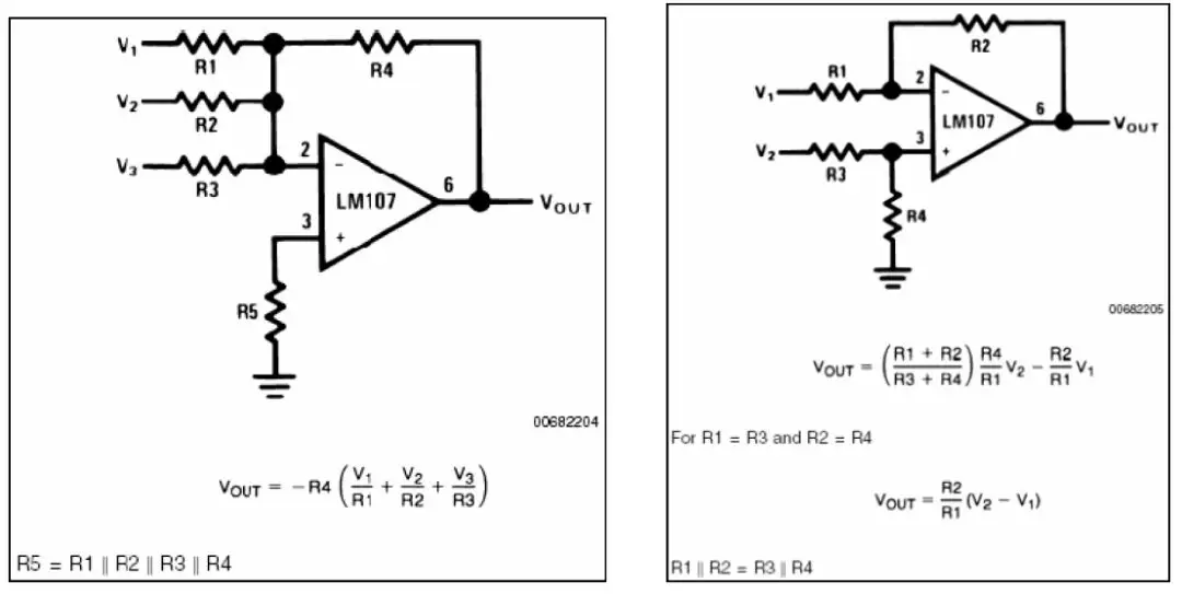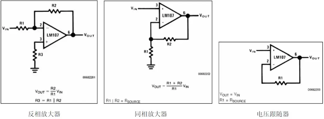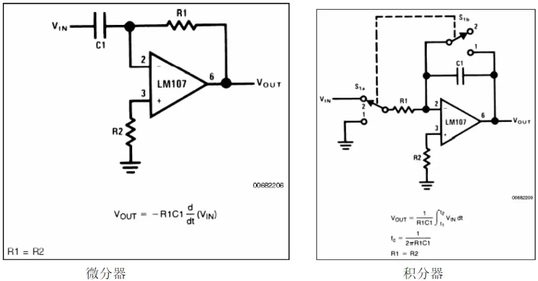88请画出运算放大器构成的反相放大器、同相放大器、电压跟随器、反相加法器、减法器、微分器和积分器电路。
