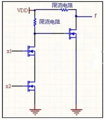 69请写出下图中x1、x2、f 的真值表和逻辑关系式(三个场效应管均为NMOS 管)