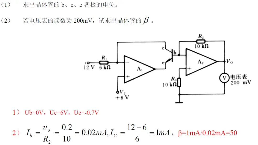 90由理想运算放大器组成的晶体管电流放大系数β 测试电路如图所示,设晶体管的UBE=0.7V。