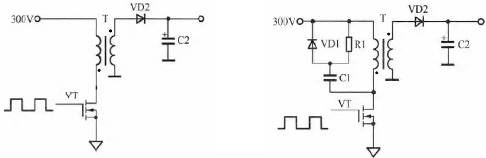 86下图是反激式开关电源的局部原理图,请给反激式变压器加上尖峰吸收电路。