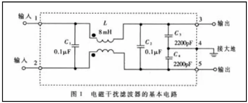 85请画出一个220V 交流电源的EMI 滤波器的基本电路图。