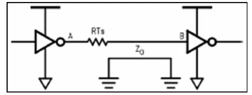 79下图是一个传输线串联匹配的模型,假设驱动端A 的输出阻抗R0 为10~20 欧姆(输出高电平和输出低电平时输出阻抗不一样),传输线特征阻抗Z0 等于50 欧姆,请问串联匹配电阻RTs 应该如何取值?