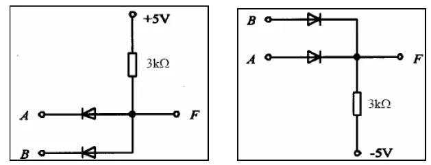65请画出二极管和电阻组成的二输入与门、二输入或门。