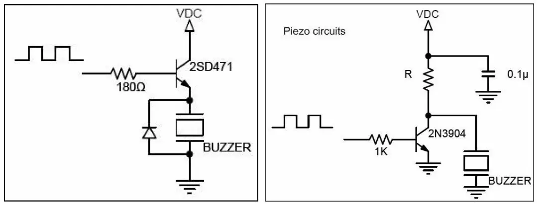 76如下左图是有源电磁式蜂鸣器的驱动电路,右图是有源压电式蜂鸣器的驱动电路。请问为什么左图需要二极管而右图不需要,左图二极管的作用是什么?