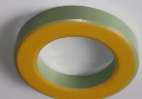 52材:淡绿色本体,蓝色底面---该材料在高频下磁芯损耗比较低,而磁导率与-26材料相同,在新型的高频抗流器上应用广泛。