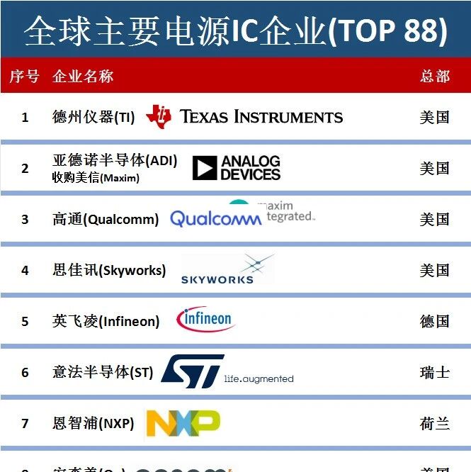电源管理芯片(TOP 88)注:排名无先后,如有遗漏错误之处请指正,联系方式如下:投稿邮箱:ittbank@ittbank.com, ITTBANK客服热线:0755-25839333声明: 声明:文章来源ittbank。本号对所有原创、转载文章的陈述与观点均保持中立,推送文章仅供读者学习和交流。文章、图片等版权归原作者享有,如有侵权,联系删除。 来源:硬件笔记本
