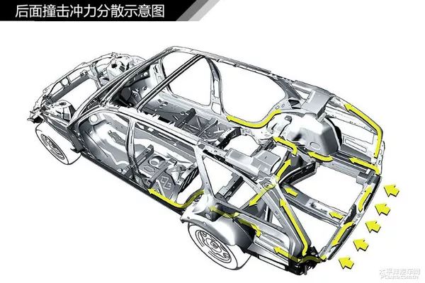 同样是为了保护驾乘室中的人员,在汽车受到撞击时,利用特殊设计的车身,将撞击力分散、转移,从而减少传递到驾乘室的撞击力,达到保护车内乘员的目的。