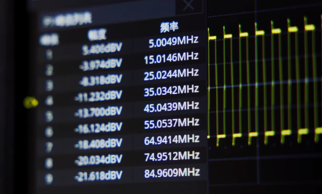 使用SDG6000X任意波形发生器输出一个5MHz的正弦波,使用SDS2000X Plus数字示波器的FFT功能后,它的频谱图只有一个峰值点处于5MHz处。